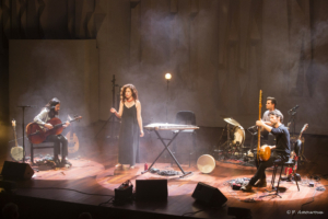 Tarakna, avant le lever du soleil, est né d’une recherche sur ces contes et poèmes de femmes berbères d’Algérie collectés par l’anthropologue Tassadit Yacine et le poète kabyle Malek Ouary. Cette poésie transmise de mère en fille, révèle une liberté de ton insoupçonnée, on y évoque des histoires d’unions non consenties, d’amour secrètes, mais aussi celles d’un colporteur qui va de cime en cime, ou encore des légendes comme celle de la danse de la jument.